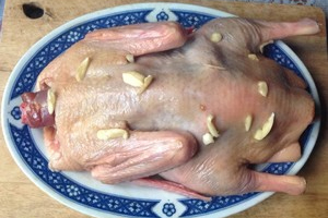2)鸭子肚子里面全部掏干净,虽然买鸭子时已经剖好。 如果有兴趣,可以拆骨,也可以留骨