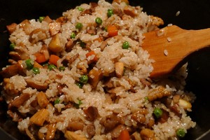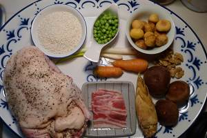 1)糯米浸泡至少两小时,把其它所有馅料切丁与糯米拌匀,加盐、老抽调好咸味