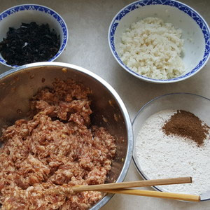 酱油,盐,料酒,鸡蛋加入肉馅搅拌上劲,然后加入荸荠,木耳,面粉五香粉,继续搅拌。