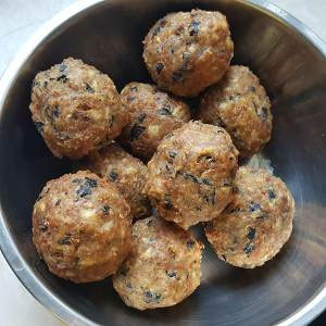 油烧到70度左右时把肉馅团成肉丸子,在丸子外面裹上水淀粉放入油锅中炸至外皮焦黄。