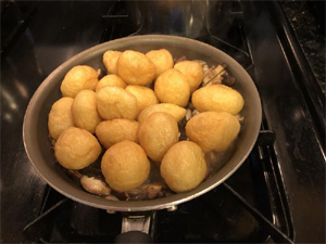 3.放入蚝油,糖,生抽,盐和水及泡软的面筋,煮透入味