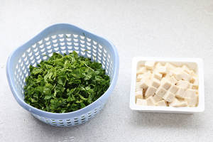 2) 荠菜择去黄叶,洗净,去根,切成末
